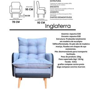 O encosto reclinável em 3 posições, combinado com assento e encosto fixos em espuma e fibra de silicone, oferece conforto máximo. Os pés removíveis em madeira facilitam o transporte e reposicionamento, enquanto o design com braços e puff proporciona relaxamento completo, perfeito para momentos de descanso.