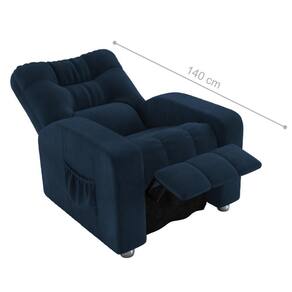 CORES DO PRODUTO (FILTRO DE CORES): Azul | MATERIAL PARA FILTRO: Veludo | ALTURA DO PRODUTO COM EMBALAGEM (CM): 77 | COMPRIMENTO PRODUTO COM EMBALAGEM (CM): 84 | MATERIAL PRINCIPAL: Veludo | PRODUTO: Poltrona | DESCRIÇÃO DO TAMANHO: 105x85x85 cm | LARGURA PRODUTO COM EMBALAGEM (CM): 84 | PESO PRODUTO COM EMBALAGEM (KG): 40 | PRODUTO PRECISA DE MONTAGEM?: Sugerimos a contratação de um montador para a montagem do produto. Não nos responsabilizamos por causadas no ato da montagem. | MARCA: CasaH | PESO DO PRODUTO (KG): 40 | ESTADO DE ORIGEM: PR | COR PREDOMINANTE: Azul | COMPRIMENTO DO PRODUTO (CM): 85 | TIPO DE CADEIRA: Poltrona | CÔMODO INDICADO: Sala | LARGURA DO PRODUTO (CM): 82 | NOME DO PRODUTO NO FORNECEDOR: Poltrona Eletrica | INSTRUÇÕES/CUIDADOS: Limpar com pano macio e seco, não utilizar produtos abrasivos | ALTURA DO PRODUTO (CM): 105 | COM ALTURA AJUSTÁVEL: Sim | COM APOIO DE BRAÇOS: Sim | QUANTIDADES DE CAIXAS DE EMBALAGEM: 1 | PESO MÁXIMO SUPORTADO: 110 | COM RODAS: Não | É GIRATÓRIA: Não | CONTEÚDO DA EMBALAGEM: 1 Poltrona | COM ENCOSTO RECLINÁVEL: Sim