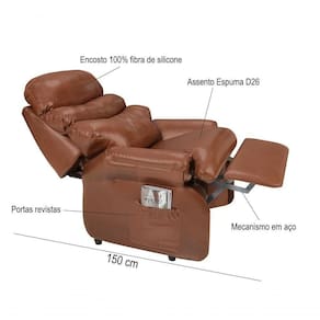 Quem nunca sonhou em ter um móvel grandão desse para assistir aos programas de preferidos? Agora chegou a sua hora de fazer isso se tornar realidade com a Poltrona Reclinável Barão! Extremamente confortável, é ideal para proporcionar momentos mais aconchegantes a você e aos seus convidados. Tem o revestimento em Courissimo, tecido macio e de textura agradável, e o enchimento fofinho do encosto é fibra 100% siliconada, e o assento é feito de espuma e percintas elásticas e possui porta revista lateral. Versátil, ela é reclinável, podendo ser em vários ambientes.