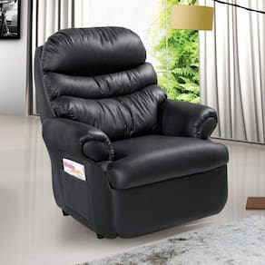 Poltrona Reclinável com espumas de alto conforto no assento e encosto enchido com 100% de fibra de silicone para proporcionar um ótimo conforto, tecidos com toques aveludados, porta revista na lateral, mecanismo em aço, estrutura em madeiras tratadas de reflorestamento, uma poltrona que pode ser usada tanto na sala como quarto. Acompanha Almofadas extras: Não Acompanha Puff: Não Almofada do assento: Fixa Almofada do encosto: Removível Altura do assento até o chão: 50 cm Altura do Encosto: 100 cm Altura dos Pés: 5 cm Ambiente: Sala de Estar Ambiente Principal: Sala de Estar Complexidade da Montagem: Baixa: pode ser montado por uma pessoa sozinha Cor: Preto Cor: Preto Design Assinado: Não Enchimento do Assento: Espuma D-26 Enchimento do Braço: Espuma D-16 Enchimento do Encosto: Fibra Siliconada Encosto para a Cabeça: Sim Estampado: Não Extensível: Sim Firmeza do Assento: Macio Itens Inclusos: 1 Poltrona, Certificado de Garantia e Manual de Montagem. Itens Inclusos: 1 Poltrona, Certificado de Garantia e Manual de Montagem. Linha ou Coleção: Barão Manual de Montagem e Instalação: https://cdn2.madeiramadeira.com.br/atributo/imperio-estofados/418988-garantia-imp-rio-estofados.pdf Material do Braço: Espuma Material dos Pés: Plástico Modelo de Poltrona: Reclinável Necessita Montagem: Sim Origem do Produto: Nacional Peso: 33,8 kg Possui Percintas Elásticas: Sim Possui Pés: 04 Possui Rodízio: Não Profundidade quando extendido: 150 cm Recomendações de Uso, Manutenção e Limpeza: Não limpar com álcool ou qualquer outro produto químico. Utilize somente pano seco ou levemente umedecido. Sistema de Montagem: Encaixe e Parafusos Suporta Até (kg): 110 kg Tecido Predominante: Couro Sintético Tipo: Poltronas Tipo de Assento: Fixo Tipo de Encosto: Regulável Tipo de Poltrona: Do Papai Ean: 7898603512128