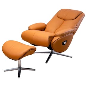 Seu revestimento combina couro natural nas áreas de maior contato, como assento e encosto parcial, com PU nas demais partes, unindo sofisticação, durabilidade e fácil manutenção. A base metálica reclinável com ajuste manual assegura estabilidade e resistência, enquanto o puff para os pés complementa o conforto. Com medidas de 82 x 82 x 110 cm, altura do assento de 48,3 cm, comprimento reclinado de 1,18 m e peso de 30 kg, é a escolha ideal para salas de estar, espaços de leitura e ambientes de relaxamento.