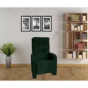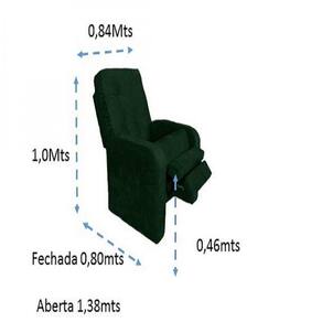 Poltrona do Papai reclinável, produto com alto nível de conforto no assento e encosto que possui enchimento com plumante 100% siliconizado, com um sistema de recline leve e de fácil operação. Tecido com toque aveludado proporcionando uma sensação de levesa e suavidade. Produto de fácil manutenção e manuseio. Excelente opção para compor seus espaços tanto na sala de estar como no quarto. Acompanha Almofadas extras: Não Acompanha Puff: Não Almofada do assento: Fixa Almofada do encosto: Fixa Altura: 106 cm Altura do assento até o chão: 45 cm Altura do Encosto: 106 cm Altura dos Pés: 2 cm Ambiente Principal: Sala de Estar Complexidade da Montagem: Média: pode ser montado por mais de uma pessoa e/ou necessite de maior conhecimento para montagem Cr: Verde Cr do Produto: Verde Design Assinado: Não Enchimento do Assento: Espuma D-26 Enchimento do Braço: Espuma D-26 Enchimento do Encosto: Fibra Siliconada Encosto para a Cabeça: Não Estampado: Não Estilo: Moderno Extensível: Sim Firmeza do Assento: Macio Informações Complementares: Percintas de pneus para maior durabilidade e vida [util do produto.Mecanismo com 3 estagios de regulagem. Itens Inclusos: 1 Poltrona reclinável Largura: 84 cm Linha ou Coleção: Linha Material da Estrutura: Madeira Pinus Material do Braço: Madeira Pinus, Espuma D26 Tecido Suedd Material dos Pés: Borracha Modelo de Poltrona: Reclinável Necessita Montagem: Sim Origem do Produto: Nacional Peso: 35 kg Possui Apoio para Braços: Sim Possui Percintas Elásticas: Não Possui Pés: 04 Possui Rodízio: Não Profundidade: 80 cm Profundidade quando extendido: 138 cm Recomendações de Uso, Manutenção e Limpeza: N'ao utilzar alcool ou qualquer outro produto quimico, utilize somente pano seco ou levemente umedecido com agua. Sistema de Montagem: Encaixes Suporta Até (kg): 120 kg Tamanho: Tecido Predominante: Suede Tipo de Assento: Fixo Tipo de Encosto: Regulável Tipo de Espuma do Assento: Espuma Convencional Tipo de Espuma do Encosto: Fibra Siliconada Tipo de Poltrona: Do Papai