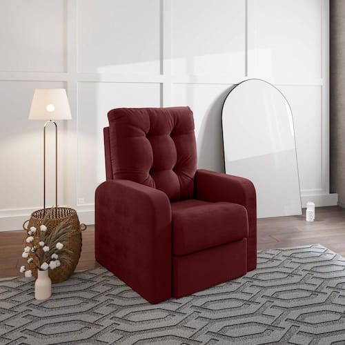 Poltrona do Papai reclinável, produto com alto nível de conforto no assento e encosto que possui enchimento com plumante 100% siliconizado, com um sistema de recline leve e de fácil operação. Tecido com toque aveludado proporcionando uma sensação de levesa e suavidade. Produto de fácil manutenção e manuseio. Excelente opção para compor seus espaços tanto na sala de estar como no quarto. Acompanha Almofadas extras: Não Acompanha Puff: Não Almofada do assento: Fixa Almofada do encosto: Fixa Altura do assento até o chão: 45 cm Altura do Encosto: 106 cm Altura dos Pés: 2 cm Ambiente Principal: Sala de Estar Complexidade da Montagem: Média: pode ser montado por mais de uma pessoa e/ou necessite de maior conhecimento para montagem Cor: Vinho Cor do Produto: Vinho Design Assinado: Não Enchimento do Assento: Espuma D-26 Enchimento do Braço: Espuma D-26 Enchimento do Encosto: Fibra Siliconada Encosto para a Cabeça: Não Estampado: Não Extensível: Sim Firmeza do Assento: Macio Informações Complementares: Percintas de pneus para maior durabilidade e vida [util do produto.Mecanismo com 3 estagios de regulagem. Itens Inclusos: 01 Poltrona reclinavel Linha ou Coleção: Linha Material do Braço: Madeira Pinus, Espuma D26 Tecido Suedd Material dos Pés: Borracha Modelo de Poltrona: Reclinável Necessita Montagem: Sim Origem do Produto: Nacional Peso: 35 kg Possui Percintas Elásticas: Não Possui Pés: 04 Possui Rodízio: Não Profundidade quando extendido: 138 cm Recomendações de Uso, Manutenção e Limpeza: N'ao utilzar alcool ou qualquer outro produto quimico, utilize somente pano seco ou levemente umedecido com agua. Sistema de Montagem: Encaixes Suporta Até (kg): 120 kg Tecido Predominante: Suede Tipo de Assento: Fixo Tipo de Encosto: Regulável Tipo de Espuma do Assento: Espuma Convencional Tipo de Poltrona: Do Papai Marca: Nabas Estofados