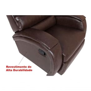 Material: A Poltrona Reclinável Imperial tem o sistema Wall e balanço, estrututa em madeira 25mm e mecanismo em aço. O encosto possui enchimento em fibra de silicone e o assento em espuma D26. Já o revestimento é em corano.