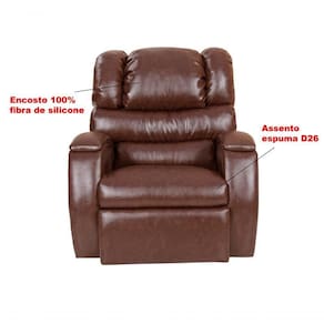 Material: A Poltrona Reclinável Imperial tem o sistema Wall e balanço, estrututa em madeira 25mm e mecanismo em aço. O encosto possui enchimento em fibra de silicone e o assento em espuma D26. Já o revestimento é em corano.