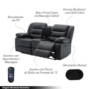 Recursos extras: Massagem com 8 pontos, aquecimento e 2 porta-copos com baú central bivolt