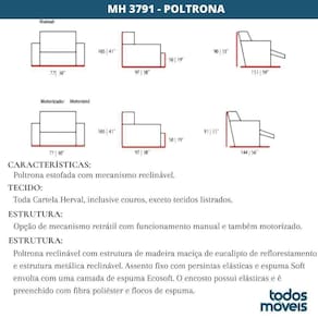 Poltrona Reclinável Mh-3791 Herval Estofada Terracota B Nada mais prazeroso que poder chegar em casa depois de um dia cansativo e poder descansar em uma linda e confortável poltrona reclinável, não é mesmo? A poltrona reclinável MH-3791 possui uma estrutura em madeira de eucalipto de reflorestamento entregando toda a resistência e durabilidade necessária a um produto como este. Seu estofado revestido em tecido ou couro é super macio para garantir uma sensação mais suave quando em contato com a pele, e de quebra, tem um estilo único, com formato perfeito para abraçar e o seu corpo durante o uso. Sendo a escolha perfeita para você poder descansar e se sentir nas nuvens, depois de um dia cheio. Há outras possibilidades de acabamento para o revestimento. Garantia (via): 6 | Cor: Terracota | Produto: Poltrona Reclinável MH-3791 Herval Estofada Terracota B | Materiais: Tecido, Espuma, Aço, Madeira | Estilo de Decoração: Moderno | Tonalidade: Laranja | Material da estrutura: Madeira | Linha: MH-3791 | Marca: Herval | Montagem: Desmontado | Cômodo Indicado: Salas | Tipo de Base: Fixa | Atributos: Versátil, Resistente, Confortável | Área de uso: Interna | Garantia (tempo): 6 meses | Garantia (descritivo): Garantia contra defeitos de fabricação de 06 meses. Consulte as nossas políticas. | Peso (kg): 32.00 | Medidas: Largura (cm): 77.00 | Capacidade de Peso: 120 | Medidas: Profundidade (cm): 97.00 | Medidas: Altura (cm): 90.00 | Medidas: Altura até o Assento (cm): 50.00 | Possui Braços?: Sim | Possui Braços Reguláveis?: Não | Entregue Montado?: Não | Possui Manual de Montagem?: Acompanha o Produto | Origem do Produto: Nacional | Conservação e Manutenção: Limpeza com pano seco, escova com cerdas macias ou aspirador. | Possui Estrutura Giratória?: Não | Possui Estrutura Reclinável?: Sim | Possui Regulagem de Inclinação?: Sim | Tipo de Assento: Reclinável | Tipo de Encosto: Regulável | Tipo de Poltrona: Reclinável | Estado de Origem: RS | Conteúdo da Embalagem: 1 Poltrona | Height: 90 CENTIMETERS | Width: 77 CENTIMETERS | SideToSide: 97 CENTIMETERS