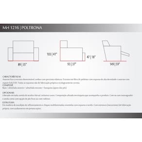BENEFÍCIOS EXTERNOS POLTRONA E SOFÁ Forração de Revestimento Poltrona e Sofá - Courano Profundidade da Poltrona e Sofá Aberto - 149 Vantagens Extras Poltrona e Sofá - Two Way - Reclinável