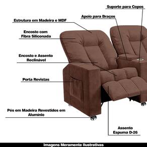 Que tal criar seu próprio home cinema? Aqui, vamos mostrar como você pode montar o seu! Com o local adequado, alguns itens decorativos e uma poltrona ideal, você garantirá um espaço confortável e imersivo. O primeiro passo é investir em equipamentos de alta qualidade! Olha só que lindeza a nossa Poltrona Reclinável Para Cinema 3 Lugares. Ela foi projetada para proporcionar máximo conforto e funcionalidade, esta poltrona é a escolha ideal para quem busca relaxamento, estilo e uma experiência de cinema privada. Seu mecanismo reclinável permite ajustar a poltrona conforme suas necessidades, independente, com 2 estágios e 3 posições ajustáveis, seja para assistir a um filme, ler um livro ou simplesmente descansar. Com capacidade para suportar até 110 kg cada oferecendo segurança e estabilidade ao consumidor. O revestimento em Veludo Terracota oferece um toque de sofisticação e conforto, enquanto a estrutura em madeira de eucalipto garante resistência e durabilidade. O sistema de abertura fácil permite ajustar a poltrona sem esforço: basta colocar as mãos nos braços, inclinar o corpo para trás e empurrar as mãos para frente. O encosto e o assento são sustentados por percintas elásticas. Eles são preenchidos com fibra siliconada e espuma D-26 Soft, respectivamente, para um conforto adicional. Os Encosto e Assento da poltrona é reclinável e nos braços contêm enchimento em espuma D-20, proporcionando um apoio suave e confortável. O assento (fixo) e o apoio de Pés Retrátil proporcionam um apoio perfeito para suas pernas, aumentando o conforto. O encosto reclinável, possibilita ajustá- lo para a posição ideal de relaxamento. Já os pés (fixos) foram feitos em madeira e revestidos em alumínio cromado, adicionando um toque de elegância ao produto. E tem mais!! Ela contém Porta Copos Embutido no Braço e um revisteiro lateral prático nas braças com um bolso prático para armazenar revistas e livros, mantendo tudo ao seu alcance. Com um design moderno e prático, esta poltrona se tornará o destaque da sua sala de estar. Afinal, sua casa merece a Poltrona Reclinável Para Cinema 3 Lugares. Adquira a sua agora mesmo e transforme sua sala de estar em um verdadeiro cinema!