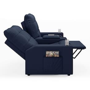 Que tal criar seu próprio home cinema? Aqui, vamos mostrar como você pode montar o seu! Com o local adequado, alguns itens decorativos e uma poltrona ideal, você garantirá um espaço confortável e imersivo. O primeiro passo é investir em equipamentos de alta qualidade! Olha só que lindeza a nossa Poltrona Reclinável Para Cinema Parma 2 Lugares. Ela foi projetada para proporcionar máximo conforto e funcionalidade, esta poltrona é a escolha ideal para quem busca relaxamento, estilo e uma experiência de cinema privada. Seu mecanismo reclinável permite ajustar a poltrona conforme suas necessidades, independente, com 2 estágios e 3 posições ajustáveis, seja para assistir a um filme, ler um livro ou simplesmente descansar. Com capacidade para suportar até 110 kg cada, oferecendo segurança e estabilidade ao consumidor. O revestimento em tecido Sintético PU Azul oferece um toque de sofisticação e conforto, enquanto a estrutura em madeira de eucalipto garante resistência e durabilidade. O sistema de abertura fácil permite ajustar a poltrona sem esforço: basta colocar as mãos nos braços, inclinar o corpo para trás e empurrar as mãos para frente. O encosto e o assento são sustentados por percintas elásticas. Eles são preenchidos com fibra siliconada e espuma D-26 Soft, respectivamente, para um conforto adicional. Os braços da Poltrona Reclinável contêm enchimento em espuma D-20, proporcionando um apoio suave e confortável. O assento (fixo) e o apoio de Pés Retrátil proporcionam um apoio perfeito para suas pernas, aumentando o conforto. O encosto reclinável, possibilita ajustá- lo para a posição ideal de relaxamento. Já os pés (fixos) foram feitos em madeira, adicionando um toque de elegância ao produto. E tem mais!! Ela contém lém disso, a poltrona ainda conta com porta copos, entrada USB e tipo C,baú porta objetos e um revisteiro lateral prático nas braças com um bolso prático para armazenar revistas e livros, mantendo tudo ao seu alcance. Com um design moderno e prático, esta poltrona se tornará o destaque da sua sala de estar. Afinal, sua casa merece a Poltrona Reclinável Para Cinema Parma 2 Lugares. Adquira a sua agora mesmo e transforme sua sala de estar em um verdadeiro cinema!