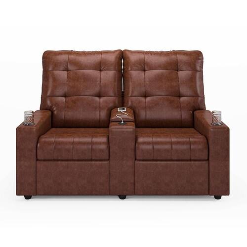 Poltrona Reclinável Para Cinema Parma 2 Lugares Baú Usb Pu Brilho Fh1 - D`rossi Cor Marrom - Blush