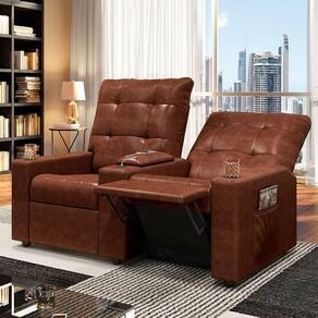 Poltrona Reclinável Para Cinema Parma 2 Lugares Baú Usb Pu Brilho Fh1 - D'rossi Cor Marrom