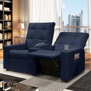Poltrona Reclinável Para Cinema Parma 2 Lugares Baú USB PU FH1 - D`Rossi - Azul