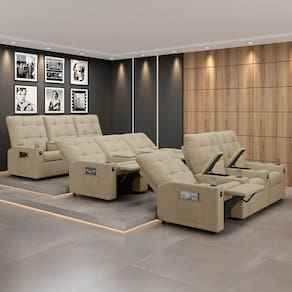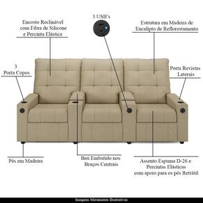 Que tal criar seu próprio home cinema? Aqui, vamos mostrar como você pode montar o seu! Com o local adequado, alguns itens decorativos e uma poltrona ideal, você garantirá um espaço confortável e imersivo. O primeiro passo é investir em equipamentos de alta qualidade! Olha só que lindeza a nossa Poltrona Reclinável Para Cinema Parma 3 Lugares. Ela foi projetada para proporcionar máximo conforto e funcionalidade, esta poltrona é a escolha ideal para quem busca relaxamento, estilo e uma experiência de cinema privada. Seu mecanismo reclinável permite ajustar a poltrona conforme suas necessidades, independente, com 2 estágios e 3 posições ajustáveis, seja para assistir a um filme, ler um livro ou simplesmente descansar. Com capacidade para suportar até 110 kg cada, oferecendo segurança e estabilidade ao consumidor. O revestimento em Linho Bege oferece um toque de sofisticação e conforto, enquanto a estrutura em madeira de eucalipto garante resistência e durabilidade. O sistema de abertura fácil permite ajustar a poltrona sem esforço: basta colocar as mãos nos braços, inclinar o corpo para trás e empurrar as mãos para frente. O encosto e o assento são sustentados por percintas elásticas. Eles são preenchidos com fibra siliconada e espuma D-26 Soft, respectivamente, para um conforto adicional. Os braços da Poltrona Reclinável contêm enchimento em espuma D-20, proporcionando um apoio suave e confortável. O assento (fixo) e o apoio de Pés Retrátil proporcionam um apoio perfeito para suas pernas, aumentando o conforto. O encosto reclinável, possibilita ajustá- lo para a posição ideal de relaxamento. Já os pés (fixos) foram feitos em madeira, adicionando um toque de elegância ao produto. E tem mais!! Ela contém lém disso, a poltrona ainda conta com porta copos, entrada USB e tipo C,baú porta objetos e um revisteiro lateral prático nas braças com um bolso prático para armazenar revistas e livros, mantendo tudo ao seu alcance. Com um design moderno e prático, esta poltrona se tornará o destaque da sua sala de estar. Afinal, sua casa merece a Poltrona Reclinável Para Cinema Parma 3 Lugares. Adquira a sua agora mesmo e transforme sua sala de estar em um verdadeiro cinema!