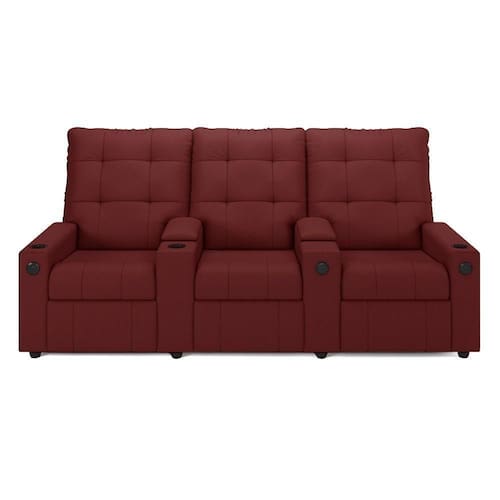 Que tal criar seu próprio home cinema? Aqui, vamos mostrar como você pode montar o seu! Com o local adequado, alguns itens decorativos e uma poltrona ideal, você garantirá um espaço confortável e imersivo. O primeiro passo é investir em equipamentos de alta qualidade! Olha só que lindeza a nossa Poltrona Reclinável Para Cinema Parma 3 Lugares. Ela foi projetada para proporcionar máximo conforto e funcionalidade, esta poltrona é a escolha ideal para quem busca relaxamento, estilo e uma experiência de cinema privada. Seu mecanismo reclinável permite ajustar a poltrona conforme suas necessidades, independente, com 2 estágios e 3 posições ajustáveis, seja para assistir a um filme, ler um livro ou simplesmente descansar. Com capacidade para suportar até 110 kg cada, oferecendo segurança e estabilidade ao consumidor. O revestimento em Sintético PU Vermelho oferece um toque de sofisticação e conforto, enquanto a estrutura em madeira de eucalipto garante resistência e durabilidade. O sistema de abertura fácil permite ajustar a poltrona sem esforço: basta colocar as mãos nos braços, inclinar o corpo para trás e empurrar as mãos para frente. O encosto e o assento são sustentados por percintas elásticas. Eles são preenchidos com fibra siliconada e espuma D-26 Soft, respectivamente, para um conforto adicional. Os braços da Poltrona Reclinável contêm enchimento em espuma D-20, proporcionando um apoio suave e confortável. O assento (fixo) e o apoio de Pés Retrátil proporcionam um apoio perfeito para suas pernas, aumentando o conforto. O encosto reclinável, possibilita ajustá- lo para a posição ideal de relaxamento. Já os pés (fixos) foram feitos em madeira, adicionando um toque de elegância ao produto. E tem mais!! Ela contém lém disso, a poltrona ainda conta com porta copos, entrada USB e tipo C,baú porta objetos e um revisteiro lateral prático nas braças com um bolso prático para armazenar revistas e livros, mantendo tudo ao seu alcance. Com um design moderno e prático, esta poltrona se tornará o destaque da sua sala de estar. Afinal, sua casa merece a Poltrona Reclinável Para Cinema Parma 3 Lugares. Adquira a sua agora mesmo e transforme sua sala de estar em um verdadeiro cinema!