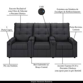 Diferenciais: Apoio de pés retrátil, bolso lateral para revistas e livros, Porta Copos Embutido nos Braços Laterais e Baú porta objetos