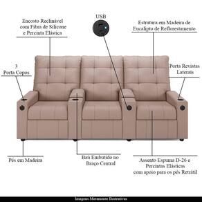 Que tal criar seu próprio home cinema? Aqui, vamos mostrar como você pode montar o seu! Com o local adequado, alguns itens decorativos e uma poltrona ideal, você garantirá um espaço confortável e imersivo. O primeiro passo é investir em equipamentos de alta qualidade! Olha só que lindeza a nossa Poltrona Reclinável Para Cinema Parma 3 Lugares. Ela foi projetada para proporcionar máximo conforto e funcionalidade, esta poltrona é a escolha ideal para quem busca relaxamento, estilo e uma experiência de cinema privada. Seu mecanismo reclinável permite ajustar a poltrona conforme suas necessidades, independente, com 2 estágios e 3 posições ajustáveis, seja para assistir a um filme, ler um livro ou simplesmente descansar. Com capacidade para suportar até 110 kg cada, oferecendo segurança e estabilidade ao consumidor. O revestimento em Veludo Rosê oferece um toque de sofisticação e conforto, enquanto a estrutura em madeira de eucalipto garante resistência e durabilidade. O sistema de abertura fácil permite ajustar a poltrona sem esforço: basta colocar as mãos nos braços, inclinar o corpo para trás e empurrar as mãos para frente. O encosto e o assento são sustentados por percintas elásticas. Eles são preenchidos com fibra siliconada e espuma D-26 Soft, respectivamente, para um conforto adicional. Os braços da Poltrona Reclinável contêm enchimento em espuma D-20, proporcionando um apoio suave e confortável. O assento (fixo) e o apoio de Pés Retrátil proporcionam um apoio perfeito para suas pernas, aumentando o conforto. O encosto reclinável, possibilita ajustá- lo para a posição ideal de relaxamento. Já os pés (fixos) foram feitos em madeira, adicionando um toque de elegância ao produto. E tem mais!! Ela contém lém disso, a poltrona ainda conta com porta copos, entrada USB e tipo C,baú porta objetos e um revisteiro lateral prático nas braças com um bolso prático para armazenar revistas e livros, mantendo tudo ao seu alcance. Com um design moderno e prático, esta poltrona se tornará o destaque da sua sala de estar. Afinal, sua casa merece a Poltrona Reclinável Para Cinema Parma 3 Lugares. Adquira a sua agora mesmo e transforme sua sala de estar em um verdadeiro cinema!
