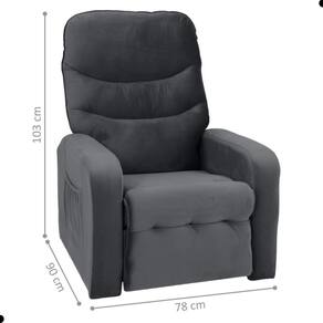 Requer montagem: Sim | Inclui manual de montagem: Sim | Quantidade de caixas de embalagem: 1 | Comprimento: 90 | Profundidade: 90 | Altura: 103 | Largura: 78 | PRODUTO: Poltrona | INSTRUÇÕES/CUIDADOS: Limpar com pano macio e seco, não utilizar produtos abrasivos | COM RODAS: Não | COMPRIMENTO PRODUTO COM EMBALAGEM (CM): 80 | ESTADO DE ORIGEM: PR | LARGURA DO PRODUTO (CM): 78 | COR PREDOMINANTE: Cinza | LARGURA PRODUTO COM EMBALAGEM (CM): 80 | ALTURA DO PRODUTO (CM): 103 | CÔMODO INDICADO: Sala | COM APOIO DE BRAÇOS: Sim | CORES DO PRODUTO (FILTRO DE CORES): Cinza | PESO DO PRODUTO (KG): 37 | CONTEÚDO DA EMBALAGEM: 1 Poltrona | COMPRIMENTO DO PRODUTO (CM): 90 | ALTURA DO PRODUTO COM EMBALAGEM (CM): 70 | DESCRIÇÃO DO TAMANHO: 103x78x90 cm | NOME DO PRODUTO NO FORNECEDOR: Poltrona Eletrica | PRODUTO PRECISA DE MONTAGEM?: Sugerimos a contratação de um montador para a montagem do produto. Não nos responsabilizamos por causadas no ato da montagem. | COM ALTURA AJUSTÁVEL: Sim | COM ENCOSTO RECLINÁVEL: Sim | É GIRATÓRIA: Não | PESO MÁXIMO SUPORTADO: 110 | TIPO DE CADEIRA: Poltrona | QUANTIDADES DE CAIXAS DE EMBALAGEM: 1 | MATERIAL PARA FILTRO: Veludo | MATERIAL PRINCIPAL: Veludo | PESO PRODUTO COM EMBALAGEM (KG): 37