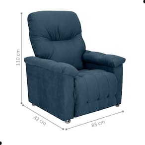 Requer montagem: Sim | Inclui manual de montagem: Sim | Quantidade de caixas de embalagem: 1 | Comprimento: 82 | Profundidade: 82 | Altura: 110 | Largura: 83 | INSTRUÇÕES/CUIDADOS: Limpar com pano macio e seco, não utilizar produtos abrasivos | PRODUTO: Poltrona | COR PREDOMINANTE: Azul | LARGURA PRODUTO COM EMBALAGEM (CM): 84 | MATERIAL PARA FILTRO: Veludo | COMPRIMENTO DO PRODUTO (CM): 82 | ESTADO DE ORIGEM: PR | COM ENCOSTO RECLINÁVEL: Sim | COM RODAS: Não | DESCRIÇÃO DO TAMANHO: 110x83x82 cm | CORES DO PRODUTO (FILTRO DE CORES): Azul | ALTURA DO PRODUTO COM EMBALAGEM (CM): 72 | PRODUTO PRECISA DE MONTAGEM?: Sugerimos a contratação de um montador para a montagem do produto. Não nos responsabilizamos por causadas no ato da montagem. | ALTURA DO PRODUTO (CM): 110 | COM ALTURA AJUSTÁVEL: Sim | COMPRIMENTO PRODUTO COM EMBALAGEM (CM): 84 | MATERIAL PRINCIPAL: Veludo | LARGURA DO PRODUTO (CM): 83 | CÔMODO INDICADO: Sala | É GIRATÓRIA: Não | PESO MÁXIMO SUPORTADO: 110 | TIPO DE CADEIRA: Poltrona | QUANTIDADES DE CAIXAS DE EMBALAGEM: 1 | NOME DO PRODUTO NO FORNECEDOR: Poltrona Eletrica | CONTEÚDO DA EMBALAGEM: 1 Poltrona | PESO PRODUTO COM EMBALAGEM (KG): 36 | PESO DO PRODUTO (KG): 36 | COM APOIO DE BRAÇOS: Sim