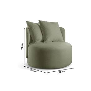 A poltrona Moon combina estilo contemporâneo com design inovador. Suas linhas suaves e estética minimalista trazem sofisticação a qualquer ambiente, enquanto sua forma circular convida ao conforto e acolhimento. Acompanhada de duas almofadas decorativas, adiciona um toque extra de estilo. Sua estrutura em eucalipto tratado garante durabilidade e resistência, enquanto a espuma de alta qualidade, classificada como D28, oferece conforto excepcional. Acompanha Almofadas extras: 02 Acompanha Puff: Não Almofada do assento: Fixa Almofada do encosto: Removível Altura do assento até o chão: 42 cm Altura do Encosto: 31 cm Ambiente Principal: Sala de Estar Cor: Verde Cor do Produto: Verde Design Assinado: Não Enchimento do Assento: Espuma D-28 Encosto para a Cabeça: Não Estampado: Não Extensível: Não Firmeza do Assento: Médio Itens Inclusos: 1 poltrona + 2 almofadas Linha ou Coleção: Moon Modelo de Poltrona: Fixo Necessita Montagem: Não Origem do Produto: Nacional Peso: 15 kg Possui Percintas Elásticas: Não Possui Pés: Não Recomendações de Uso, Manutenção e Limpeza: Utilizar aspirador de pó, escova com cerdas macias ou limpeza a seco. Não utilizar produtos químicos, abrasivos ou limpeza a vapor. Evitar exposição prolongada ao sol. Suporta Até (kg): 120 kg Tecido Predominante: Boucle Tipo de Assento: Fixo Tipo de Encosto: Fixo Tipo de Espuma do Assento: Espuma Convencional Tipo de Poltrona: Decorativa Marca: Zurc Decor