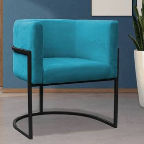 Poltrona Reforçada Decorativa Sala Carla Base Ferro Preta Suede Azul Tifany