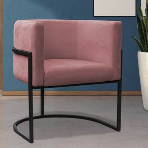 Poltrona Reforçada Decorativa Sala Carla Base Ferro Preta Suede Rose - Rosê