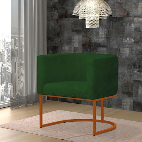 Poltrona Reforçada Decorativa Sala Gabriela Base Ferro Bronze Suede - Verde