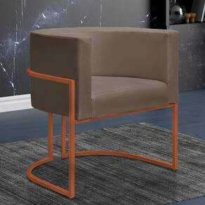 Poltrona Reforçada Decorativa Sala Nayara Base Ferro Bronze Suede - Bege Médio