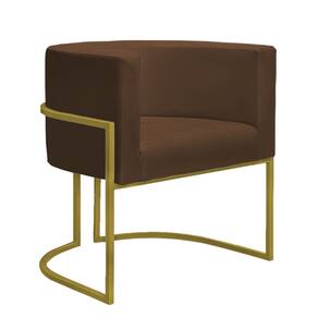 Poltrona Reforçada Decorativa Sala Nayara Base Ferro Dourado Suede - Marrom