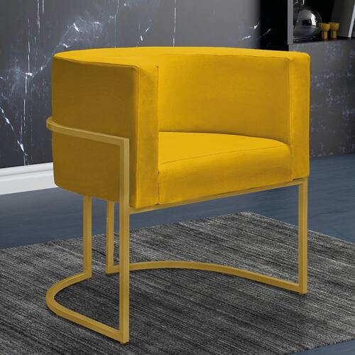 Poltrona Reforçada Decorativa Sala Nayara Base Ferro Dourado Suede - Amarelo