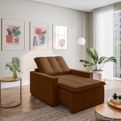 Poltrona Retrátil com Braço Reto Palmeira Cabecasa Madeiramadeira Marrom