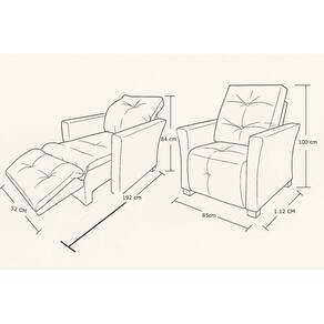 Profundidade total fechada 1.12 Profundidade aberta 192 cm Largura 85cm Altura de pê 100 cm Altura deitado 84 cm