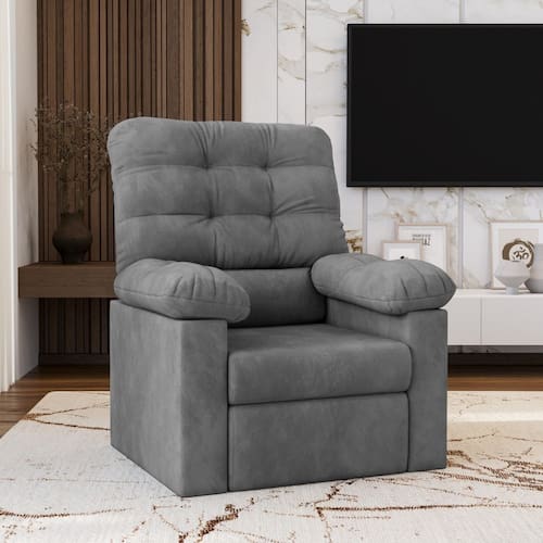 Poltrona Retrátil Reclinável Sued do Papai Flash, Desfrute de ótimo conforto para você e sua família com um estofado pensado para o bem-estar no dia a dia. Fabricado com espuma D-23, oferece a combinação ideal de maciez e sustentação, proporcionando momentos agradáveis em qualquer ambiente. Sua estrutura é feita com madeira de reflorestamento, unindo durabilidade e responsabilidade ambiental em um móvel que valoriza o seu lar.