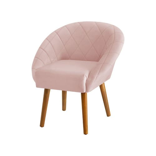 Poltrona Retrô Sofia Pé Palito em Madeira Veludo Rosa