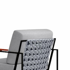 - Material: Estrutura em aço, pintura Epóxi, espuma D26, encosto com preenchido com fibra de silicone e rattan;