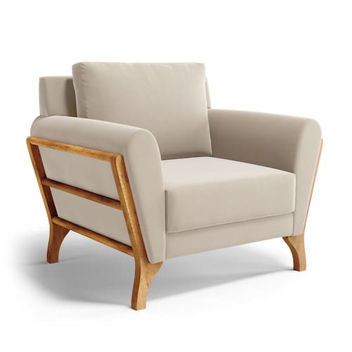 • 1 Poltrona Sabrina Pés Em Madeira (Montada) 1 Almofada De Fibra Siliconada