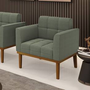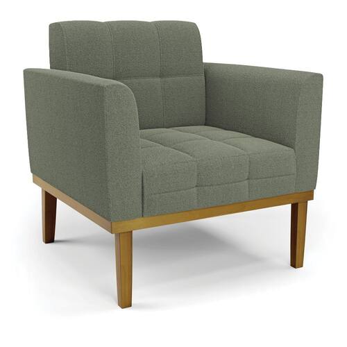 Poltrona Sala Base Madeira Fixa Castanho Elisa Bouclê D03 - D`Rossi - Verde Cinza