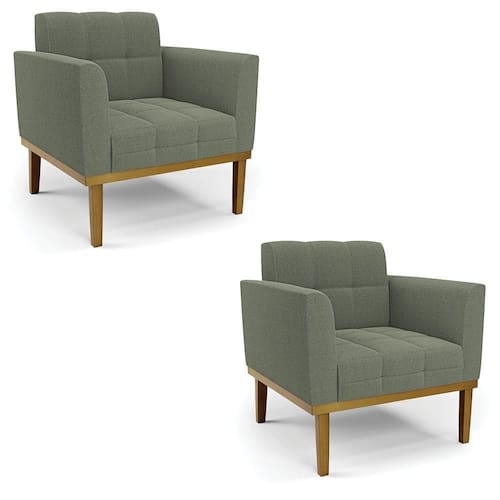 A Poltrona Elisa é uma poltrona que combina elegância, conforto e durabilidade. Ela tem um design retrô e sofisticado, com Base de Madeira Fixa Castanho e revestimento em tecido Bouclê Menta, que harmonizam com qualquer ambiente. Ela é ideal para sala de estar, recepções, escritórios, cozinhas ou qualquer outro espaço que você queira decorar com estilo e bom gosto. Ela tem uma estrutura em madeira de reflorestamento eucalipto, que garante a resistência e a sustentabilidade do produto. Ela suporta até 120 kg de peso, podendo ser utilizada por pessoas de diferentes biotipos. Ela tem um acabamento reforçado e espuma de qualidade D23, que oferece maciez e aconchego. Ela contém detalhes de costura no encosto e assento, resultando em um acabamento impecável, conferindo muito mais valor e elegância ao produto. A Poltrona Elisa é um móvel de alta qualidade, beleza e funcionalidade. Ela é fácil de transportar, pois tem um peso leve e um tamanho compacto. A Poltrona Elisa é um produto que vai fazer a diferença na sua decoração e no seu bem-estar. Ela vai trazer charme, conforto e durabilidade para o seu ambiente. Aproveite essa oferta e leve para casa uma poltrona de qualidade por um preço incrível. Essa é a sua chance de ter uma poltrona maravilhosa por um preço imperdível. Corra e garanta seu Kit 2 Poltronas antes que acabe o estoque!