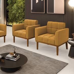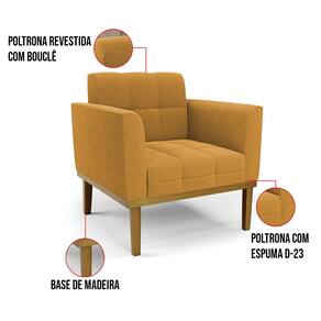 A Poltrona Elisa é uma poltrona que combina elegância, conforto e durabilidade. Ela tem um design retrô e sofisticado, com Base de Madeira Fixa Castanho e revestimento em tecido Bouclê Mostarda, que harmonizam com qualquer ambiente. Ela é ideal para sala de estar, recepções, escritórios, cozinhas ou qualquer outro espaço que você queira decorar com estilo e bom gosto. Ela tem uma estrutura em madeira de reflorestamento eucalipto, que garante a resistência e a sustentabilidade do produto. Ela suporta até 120 kg de peso, podendo ser utilizada por pessoas de diferentes biotipos. Ela tem um acabamento reforçado e espuma de qualidade D23, que oferece maciez e aconchego. Ela contém detalhes de costura no encosto e assento, resultando em um acabamento impecável, conferindo muito mais valor e elegância ao produto. A Poltrona Elisa é um móvel de alta qualidade, beleza e funcionalidade. Ela é fácil de transportar, pois tem um peso leve e um tamanho compacto. A Poltrona Elisa é um produto que vai fazer a diferença na sua decoração e no seu bem-estar. Ela vai trazer charme, conforto e durabilidade para o seu ambiente. Aproveite essa oferta e leve para casa uma poltrona de qualidade por um preço incrível. Essa é a sua chance de ter uma poltrona maravilhosa por um preço imperdível. Corra e garanta seu Kit 2 Poltronas antes que acabe o estoque!