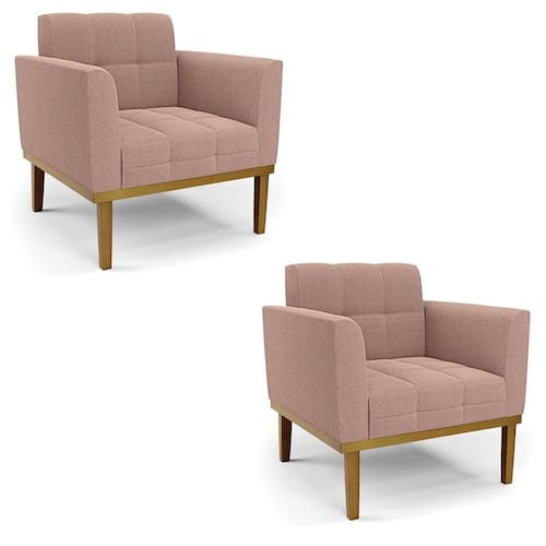 A Poltrona Elisa é uma poltrona que combina elegância, conforto e durabilidade. Ela tem um design retrô e sofisticado, com Base de Madeira Fixa Castanho e revestimento em tecido Bouclê Rosê, que harmonizam com qualquer ambiente. Ela é ideal para sala de estar, recepções, escritórios, cozinhas ou qualquer outro espaço que você queira decorar com estilo e bom gosto. Ela tem uma estrutura em madeira de reflorestamento eucalipto, que garante a resistência e a sustentabilidade do produto. Ela suporta até 120 kg de peso, podendo ser utilizada por pessoas de diferentes biotipos. Ela tem um acabamento reforçado e espuma de qualidade D23, que oferece maciez e aconchego. Ela contém detalhes de costura no encosto e assento, resultando em um acabamento impecável, conferindo muito mais valor e elegância ao produto. A Poltrona Elisa é um móvel de alta qualidade, beleza e funcionalidade. Ela é fácil de transportar, pois tem um peso leve e um tamanho compacto. A Poltrona Elisa é um produto que vai fazer a diferença na sua decoração e no seu bem-estar. Ela vai trazer charme, conforto e durabilidade para o seu ambiente. Aproveite essa oferta e leve para casa uma poltrona de qualidade por um preço incrível. Essa é a sua chance de ter uma poltrona maravilhosa por um preço imperdível. Corra e garanta seu Kit 2 Poltronas antes que acabe o estoque!