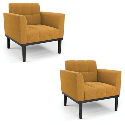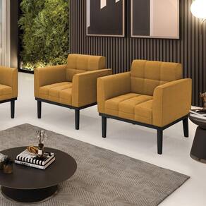 Poltrona Sala Base Madeira Fixa Pto Kit 2 Elisa Bouclê D03 - D?rossi Cor Mostarda A Poltrona Elisa é uma poltrona que combina elegância, conforto e durabilidade. Ela tem um design retrô e sofisticado, com Base de Madeira Fixa Preto e revestimento em tecido Bouclê. Ela é ideal para sala de estar, recepções, escritórios, cozinhas ou qualquer outro espaço que você queira decorar com estilo e bom gosto. Ela tem uma estrutura em madeira de reflorestamento eucalipto, que garante a resistência e a sustentabilidade do produto. Ela suporta até 120 kg de peso, podendo ser utilizada por pessoas de diferentes biotipos. Ela tem um acabamento reforçado e espuma de qualidade D23, que oferece maciez e aconchego. Ela contém detalhes de costura no encosto e assento, resultando em um acabamento impecável, conferindo muito mais valor e elegância ao produto. A Poltrona Elisa é um móvel de alta qualidade, beleza e funcionalidade. Ela é fácil de transportar, pois tem um peso leve e um tamanho compacto. A Poltrona Elisa é um produto que vai fazer a diferença na sua decoração e no seu bem-estar. Ela vai trazer charme, conforto e durabilidade para o seu ambiente. Aproveite essa e leve para casa uma poltrona de qualidade por um preço incrível. Essa é a sua chance de ter uma poltrona maravilhosa por um preço imperdível. Corra e garanta seu Kit 2 Poltronas antes que acabe o estoque! Dimensões do Produto: Altura Total: 81 cm Largura Total: 64 cm Profundidade Total: 64 cm Altura do Encosto: 36 cm Largura do Assento: 47 cm Profundidade do Assento: 48 cm Altura do chão ao Assento: 45 cm Espessura do Assento: 18 cm Espessura do braço: 9 cm Altura interna do braço: 20 cm Tamanho dos pés: 30 cm Peso: 18 kg Especificações do Produto: Estrutura: Madeira Eucalipto Espuma: D-23 Tecido: Bouclê Peso Suportado: Até 120 Kg Tipo de Pés: Base de Madeira Preto Tipo de Encosto: Fixo Tipo de Assento: Fixo Complexidade da Montagem: Baixo Montagem: O produto vai montado, apenas parafusar a base Garantia: 90 dias contra de fabricação Instruções de Limpeza: Utilizar um pano limpo e levemente úmido Você irá Receber: 02 Poltronas - Entregue em: 02 Volumes
