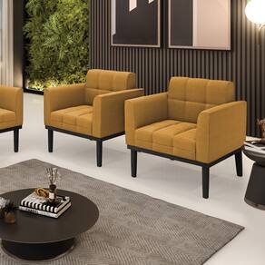 Poltrona Sala Base Madeira Fixa Pto Kit 2 Elisa Bouclê D03 - D`Rossi - Mostarda