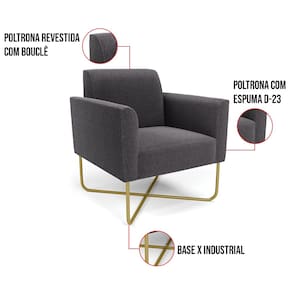 A Poltrona Marisa é a escolha perfeita para quem deseja unir conforto e comodidade em um estilo elegante. Com um design único, ela possui uma Base X Industrial Dourado que harmoniza com o seu belíssimo tom Grafite, criando uma combinação elegante de conforto e estilo. Ela é perfeita para quem busca móveis que não só sejam bonitos, mas que também proporcionem bem-estar. Ideal para compor salas de estar, recepções, bibliotecas, salas de leitura, espaços de design e até áreas comerciais, essa peça versátil é pensada para ambientes que excluam beleza e aconchego. Sua estrutura, em madeira de reflorestamento de eucalipto, oferece resistência e sustentabilidade, suportando até 120 kg, garantindo segurança para usuários de diferentes biotipos. O conforto é outro destaque, com estofado em espuma prorelax D-23, que proporciona suporte e maciez ideais. Revestida em Bouclê, um tecido maleável e sofisticado, a Poltrona Marisa segue a tendência do momento com um toque suave e quente, remetendo à textura natural da lã. Leve e fácil de transportar, a Poltrona Marisa é um item que agrega charme e durabilidade ao seu espaço. Não perca a oportunidade de adquirir essa peça exclusiva que fará toda a diferença na sua decoração e no seu bem-estar. Aproveite agora!