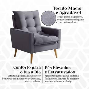 Poltrona Sala de Estar 92cm Design Moderno e Elegância Neutra para Sua Sala Cinza Ester
