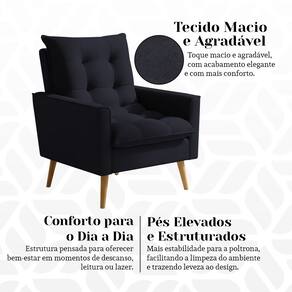 CARACTERÍSTICAS TÉCNICAS Tipo: Poltrona Modelo: Ester Indicação de uso: Sala / Ambientes internos Cor: Preto