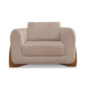 Poltrona Sala De Estar Base De Madeira Clarissa Linho S04 - D'rossi Cor Areia