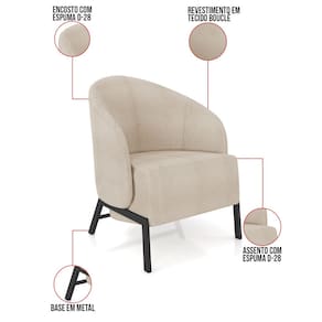 Poltrona Luar é uma peça sofisticada e moderna, ideal para compor ambientes contemporâneos. Com uma base industrial em metal preto, a poltrona destaca-se pelo revestimento em tecido Bouclê Creme, proporcionando uma combinação elegante de conforto e estilo criando uma conexão entre a peça e o ambiente. Ela é ideal para quem busca móveis que não só sejam bonitos, mas que também proporcionem conforto e bem-estar. Pode ser utilizada em sala de estar, salas de espera, recepções, bibliotecas, salas de leitura, espaços externos cobertos, espaços de design e galerias, escritórios, lojas e espaços comerciais, ou qualquer outro espaço que você queira decorar com estilo e bom gosto. Sua estrutura é feita de madeira de reflorestamento protegida (eucalipto), reforçada com cantoneiras e chapas de MDF, que garante a resistência e a sustentabilidade do produto. Ela suporta até 120 kg de peso, podendo ser utilizada por pessoas de diferentes biotipos. No quesito conforto, a poltrona conta com percintas metalúrgicas e manta acrílica, que garantem um excelente suporte e maciez ao sentar. O assento é composto por espuma D28, oferecendo um equilíbrio perfeito entre firmeza e conforto. O encosto, também em espuma D28, e o braço, em espuma D23, complementam a ergonomia do móvel, garantindo uma experiência confortável e acolhedora. Outro detalhe é seu encosto curvilíneo, que enriquece ainda mais o design da Poltrona, conferindo um charme adicional e destacando seu cuidado estético. A Poltrona Luar é um móvel de alta qualidade, que exala sofisticação e conforto. Ela é fácil de transportar, pois tem um peso leve e um tamanho compacto. A Poltrona Luar é um produto que vai fazer a diferença na sua decoração e no seu bem-estar. Ela vai trazer charme, conforto incomparável e durabilidade para o seu ambiente. Corra e garanta a sua!