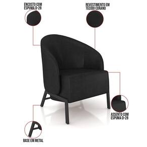 Poltrona Luar é uma peça sofisticada e moderna, ideal para compor ambientes contemporâneos. Com uma base industrial em metal preto, a poltrona destaca-se pelo revestimento em tecido Sintético PU Preto, proporcionando uma combinação elegante de conforto e estilo criando uma conexão entre a peça e o ambiente. Ela é ideal para quem busca móveis que não só sejam bonitos, mas que também proporcionem conforto e bem-estar. Pode ser utilizada em sala de estar, salas de espera, recepções, bibliotecas, salas de leitura, espaços externos cobertos, espaços de design e galerias, escritórios, lojas e espaços comerciais, ou qualquer outro espaço que você queira decorar com estilo e bom gosto. Sua estrutura é feita de madeira de reflorestamento protegida (eucalipto), reforçada com cantoneiras e chapas de MDF, que garante a resistência e a sustentabilidade do produto. Ela suporta até 120 kg de peso, podendo ser utilizada por pessoas de diferentes biotipos. No quesito conforto, a poltrona conta com percintas metalúrgicas e manta acrílica, que garantem um excelente suporte e maciez ao sentar. O assento é composto por espuma D28, oferecendo um equilíbrio perfeito entre firmeza e conforto. O encosto, também em espuma D28, e o braço, em espuma D23, complementam a ergonomia do móvel, garantindo uma experiência confortável e acolhedora. Outro detalhe é seu encosto curvilíneo, que enriquece ainda mais o design da Poltrona, conferindo um charme adicional e destacando seu cuidado estético. A Poltrona Luar é um móvel de alta qualidade, que exala sofisticação e conforto. Ela é fácil de transportar, pois tem um peso leve e um tamanho compacto. A Poltrona Luar é um produto que vai fazer a diferença na sua decoração e no seu bem-estar. Ela vai trazer charme, conforto incomparável e durabilidade para o seu ambiente. Corra e garanta a sua!