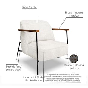 A Poltrona Talim é uma poltrona que combina elegância, conforto e durabilidade. Ela tem um design moderno e sofisticado, com base feita de ferro com pintura epóxi e revestimento em tecido Bouclê Off White, que harmonizam com qualquer ambiente. Ela é ideal para sala de estar, recepções, mesa de jantar ou qualquer outro espaço que você queira decorar com estilo e bom gosto. Ela tem uma estrutura em aço carbono com braços em madeira maciça, que garante a resistência e a sustentabilidade do produto. Ela suporta até 120 kg de peso, podendo ser utilizada por pessoas de diferentes biotipos. Ela tem assento é preenchido com espuma HR 28 combinada com plumante de silicone, que proporciona flexibilidade e conforto. O encosto é composto por espuma HR 23 e 100% fibra siliconada, proporcionando um apoio suave e aconchegante. A Poltrona Talim é um produto de alta qualidade, beleza e funcionalidade. Ela é fácil de transportar, pois tem um peso leve e um tamanho compacto. A Poltrona Talim é um produto que vai fazer a diferença na sua decoração e no seu bem-estar. Ela vai trazer charme, conforto e durabilidade para o seu ambiente. Aproveite essa oferta e leve para casa uma poltrona de qualidade por um preço incrível. Essa é a sua chance de ter uma poltrona maravilhosa por um preço imperdível. Corra e garanta a sua antes que acabe o estoque!