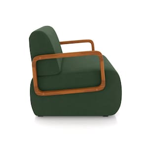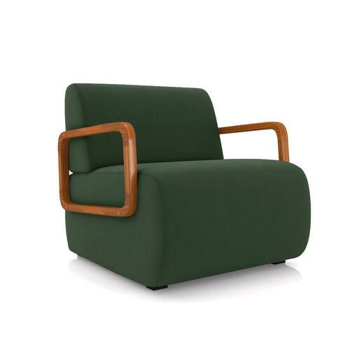 Poltrona Sala De Estar Braço De Madeira Hellen Veludo K01 - D'rossi Cor Verde